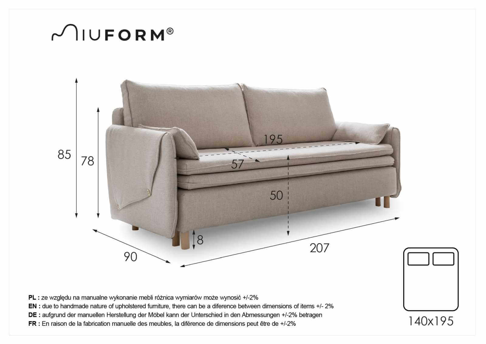 L'ensemble avec le canapé comprend également 2 coussins décoratifs (25 cm x 57 cm).