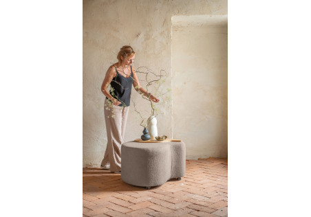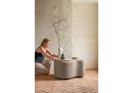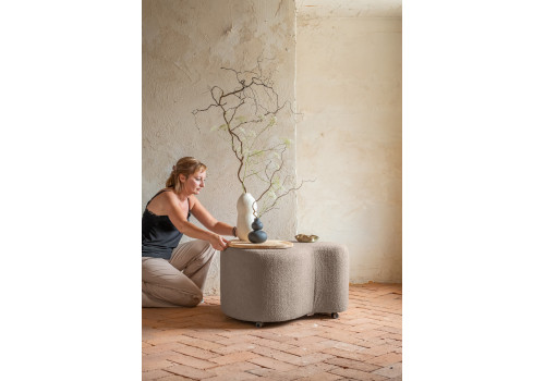 Fabriqué dans des matériaux durables, le pouf Miuf XL est très mobile grâce aux roulettes utilisées. Sa multiplication permet de créer des configurations modulaires. Associé à un pouf de taille standard, il forme un ensemble harmonieux. Il sera utilisé avec succès dans de nombreux arrangements, remplissant diverses fonctions - d'un repose-pieds dans l'entrée, en passant par une table basse dans le salon, jusqu'à un siège dans une chambre à coucher ou un dressing. Le tissu bouclé apporte un confort supplémentaire et la forme ronde et irrégulière attire le regard.