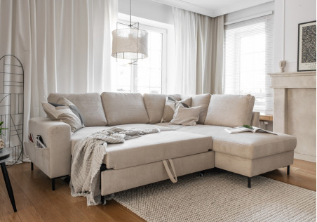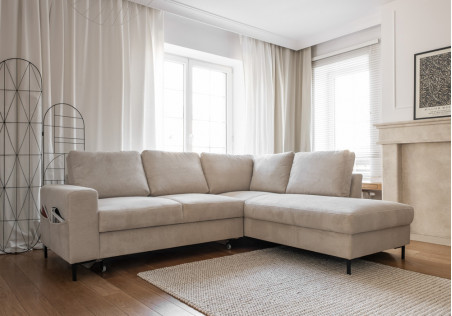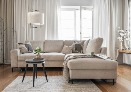 Une forme moderne et pure et des fonctions nécessaires s'associent pour offrir un confort maximal. Vous pourrez vous détendre sur le lit spacieux de Lilly, ranger vos accessoires dans une poche latérale placée dans l'accoudoir. Le tissu doux confère une atmosphère chaleureuse à votre pièce et les hauts pieds en métal ajoutent à l'attrait industriel de la collection.