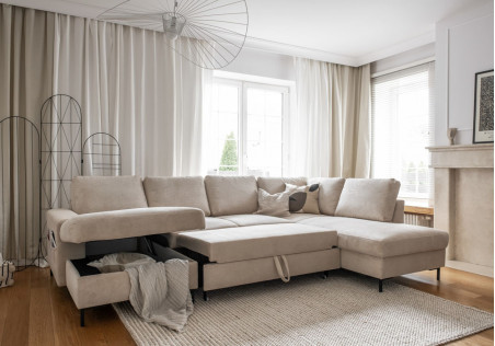Une forme moderne et pure et des fonctions nécessaires s'associent pour offrir un confort maximal. Vous pourrez vous détendre sur le lit spacieux de Lilly, ranger vos accessoires dans une poche latérale placée dans l'accoudoir. Le tissu doux confère une atmosphère chaleureuse à votre pièce et les hauts pieds en métal ajoutent à l'attrait industriel de la collection.
